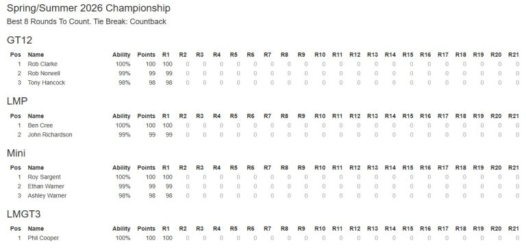Spring/Summer 2026 Championship Overall Results Add Your Heading Text Here January 6th Meeting Track January Track For full list of the Spring/Summer 2026 Championship results see the link below:- RC-Results.com/Huncote Vipers MCC