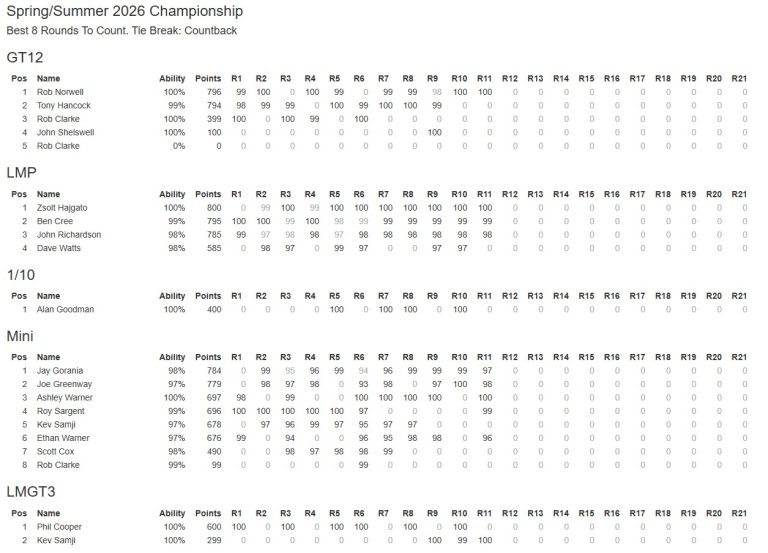 Spring/Summer 2026 Championship Overall Results Add Your Heading Text Here Add Your Heading Text Here Add Your Heading Text Here January 6th Meeting Track January Track February Track March Track April Track For full list of the Spring/Summer 2026 Championship results see the link below:- RC-Results.com/Huncote Vipers MCC